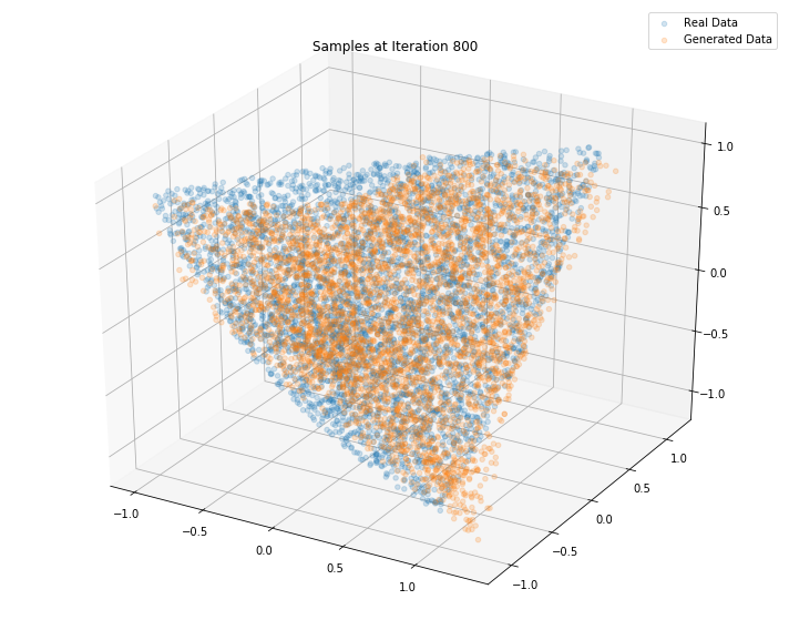 Iterations: 800 Discriminator loss: 1.3854 Generator loss: 0.6958