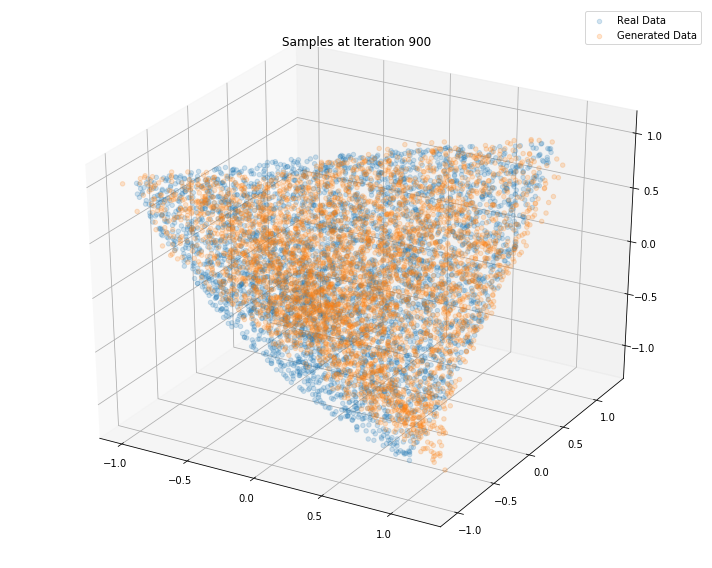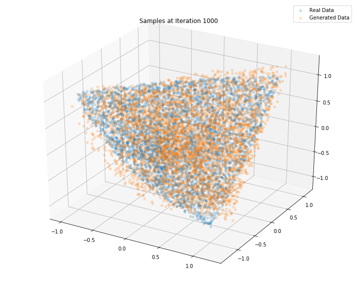 Iterations: 1000 Discriminator loss: 1.3881 Generator loss: 0.6930