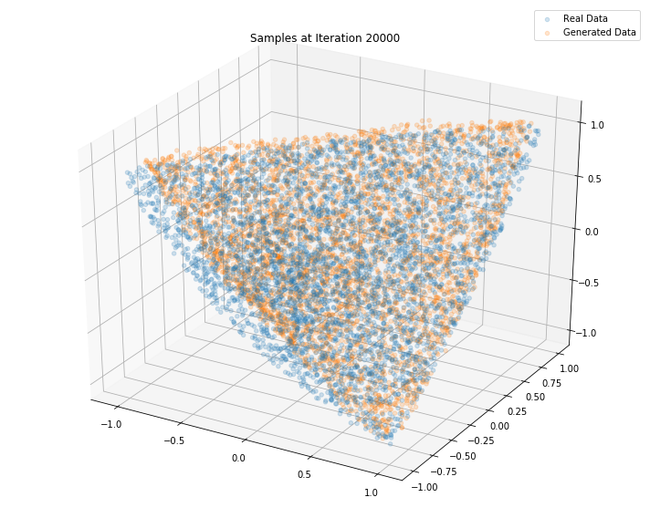 Iterations: 20000 Discriminator loss: 1.3824 Generator loss: 0.6903