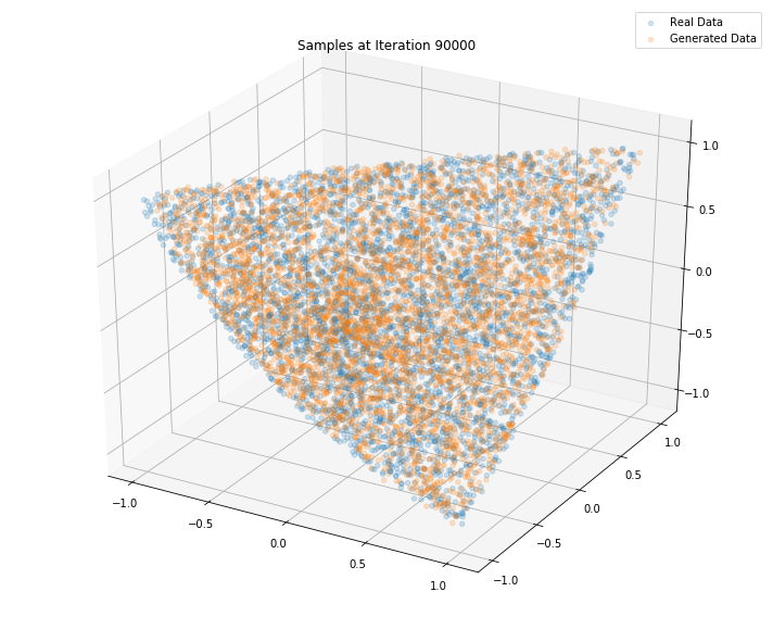 Conclusion: This simple GAN is quite useless in practice as it learns how to sample from a distribution for which we already have a good sampling algorithm, namely the onion method. However, it is an interesting exercise to see what it takes to replicate it with a GAN approach. Since successful, we envision to sample from much more complex distributions such as the distribution of “empirical financial correlation matrices” for which no sampling algorithms are known.